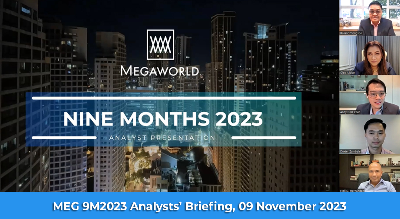 | November 9, 2023 | MEG 9M2023 Analysts' Briefing | Virtual | Megaworld Corporation | Analyst Briefing |