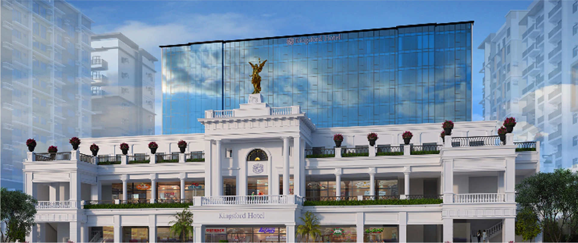 The 12-storey Kingsford Hotel Bacolod, which will be strategically located between the four residential condominium towers of One Regis, Two Regis, One Manhattan, and Herald Parksuites, will feature a unique and iconic design that blends its modern glass architecture with a podium showcasing neoclassical architecture.