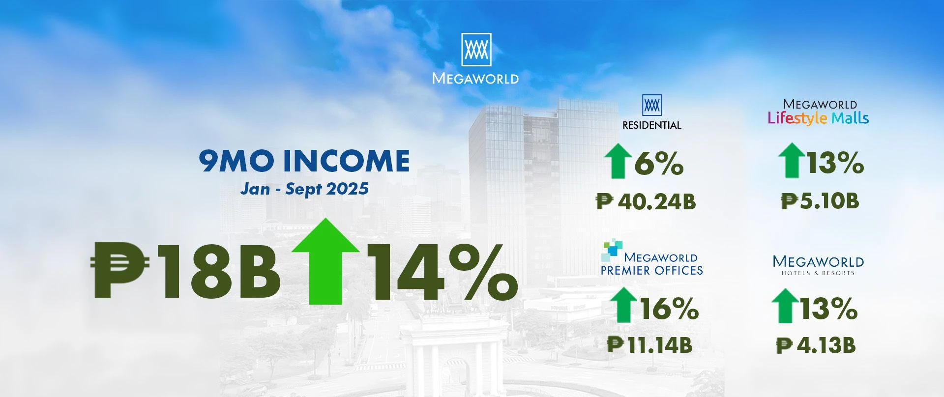Property giant Megaworld recorded a strong net income for the first nine months of 2025 as it grew 14% to almost P18-billion, mainly driven by the solid performance of the company’s core businesses, particularly its mall and office leasing, residential, as well as hotels.